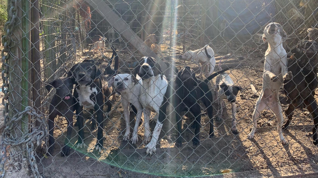 Photos from the scene showed dozens of dogs penned in a muddy area strewn with trash.