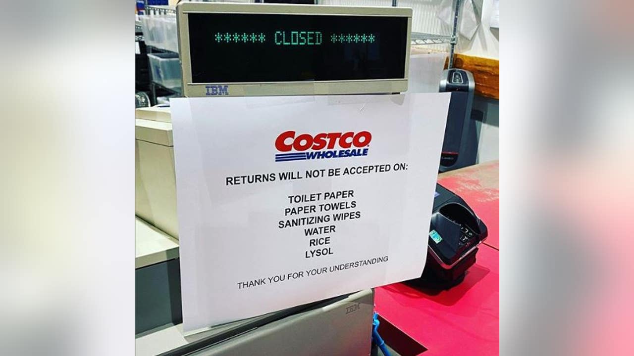 One Instagram page called “costcoinsider,” which describes itself as a page with “insider secrets” on the company, posted a picture of a notice that appears to be taped to a Costco register. The sign reads ,“returns will not be accepted on: toilet paper, paper towels, sanitizing wipes, water, rice and lysol.”