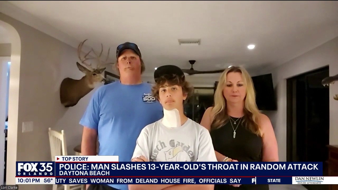 A 13-year-old boy was hospitalized after police say he was randomly attacked and his throat slashed near the Daytona Beach Pier on Saturday night.