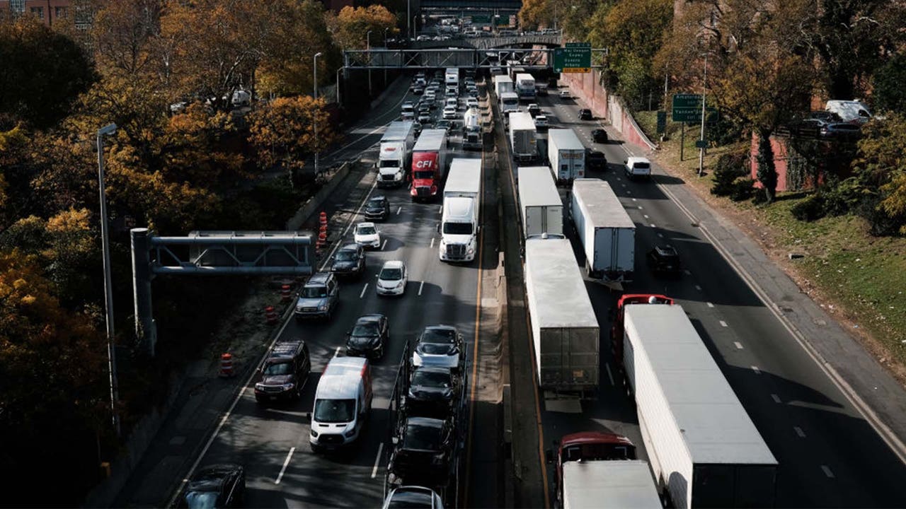 FILE - Cars and trucks move in a traffic jam. (Spencer Platt/Getty Images)