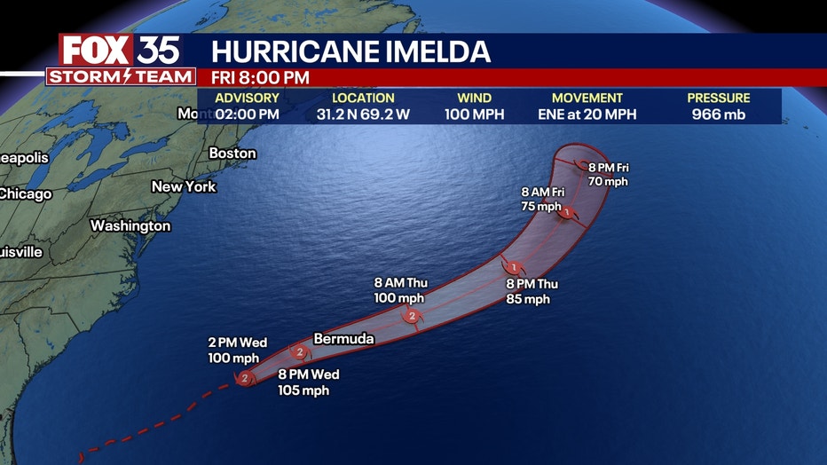 As of Wednesday evening, Hurricane Imelda was located about 190 miles west-southwest of Bermuda.