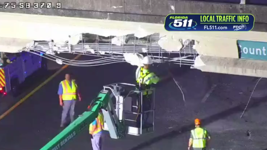 All southbound lanes of I-75, between Exits 374 (County Road 234) and Exit 368 (County Road 318) were closed early Wednesday morning as officials worked to clean up the debris. As of 10:30 a.m., all the lanes have reopened.