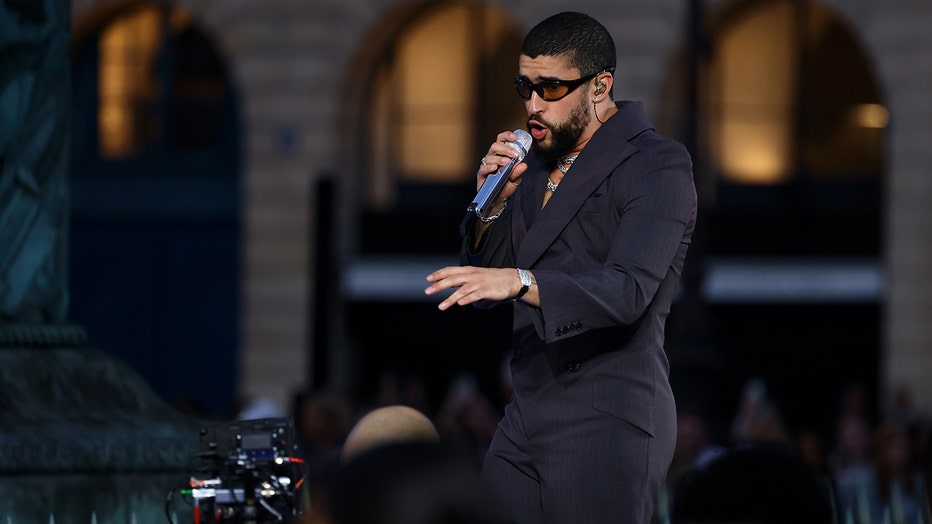 Bad Bunny performs during Vogue World: Paris at Place Vendome on June 23, 2024 in Paris, France. (Credit: Marc Piasecki/Getty Images for Vogue)