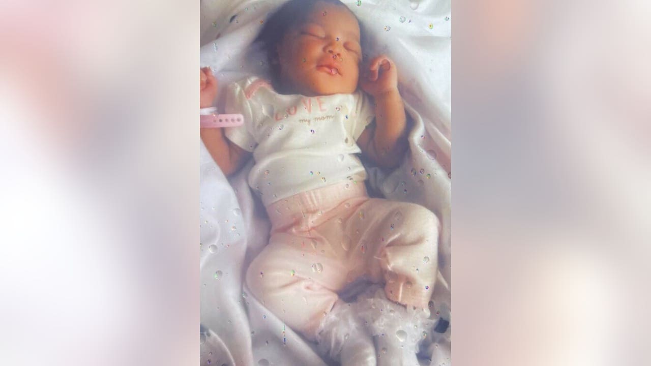 The baby girl was last seen wearing a black and white polka dot onesie with pink pants. She is 6 pounds and 17 inches long, with brown hair and brown eyes.