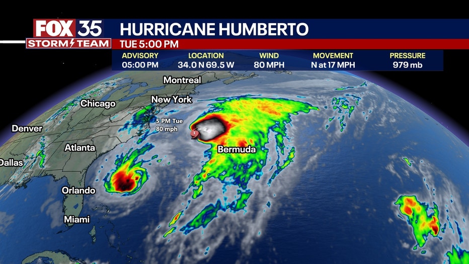 As of Tuesday evening, the NHC said Hurricane Humberto was located about 295 miles west-northwest of Bermuda.