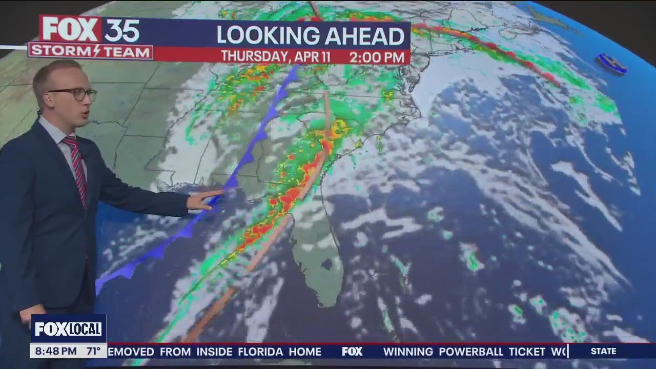 On Thursday, a cold front is expected to approach from the west during the second half of the day. A line of showers and storms is likely in Central Florida, but will weaken as it comes across the state.