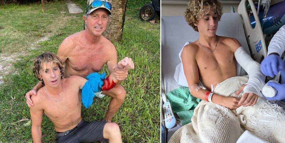 Doctors say he should be able to surf again after his arm heals. His parents support their son every step of the way and hope for the best as he recovers.
