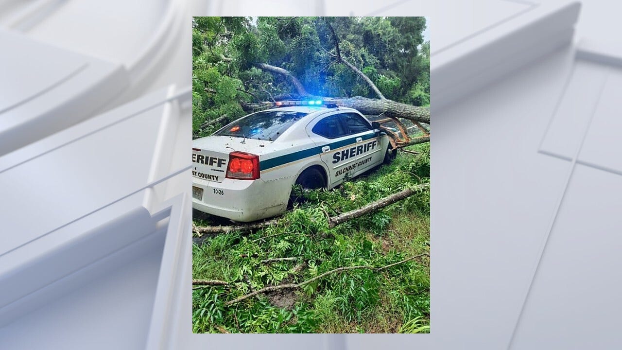 Tree falls on Gilchrist County deputy's patrol car during Tropical Storm Elsa
