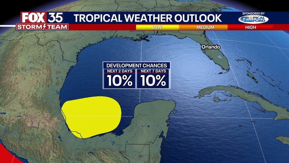 The system currently only has a 10% chance of development over the next 48 hours and seven days.