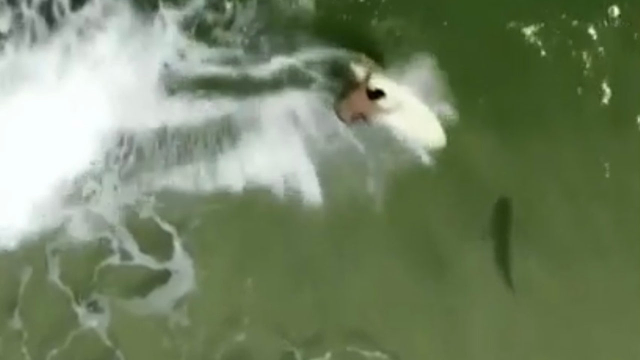 VIDEO: Drone shows Florida surfer gliding over shark