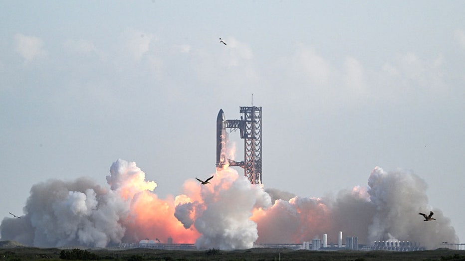 FILE - SpaceX's Starship rocket lifts off from Starbase, Texas, as seen from South Padre Island on August 26, 2025, for its tenth test flight. (Photo by RONALDO SCHEMIDT/AFP via Getty Images)