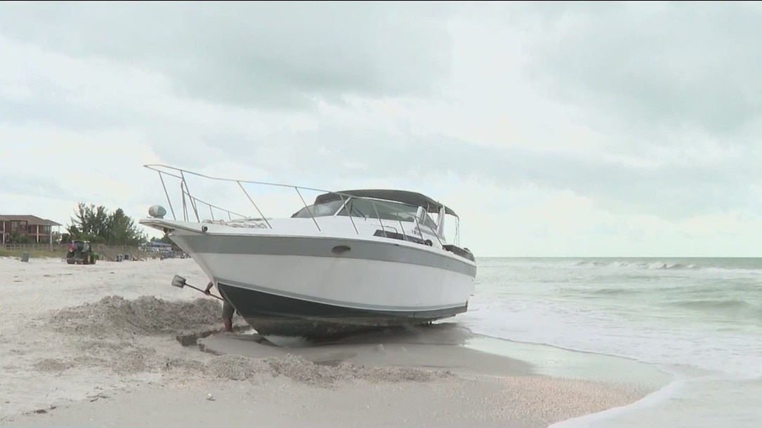 Kevin Bates had to start digging after Treasure Island Police told him to go get his boat that washed ashore. Bates said the anchor line on the boat broke during the severe weather on Wednesday night.
