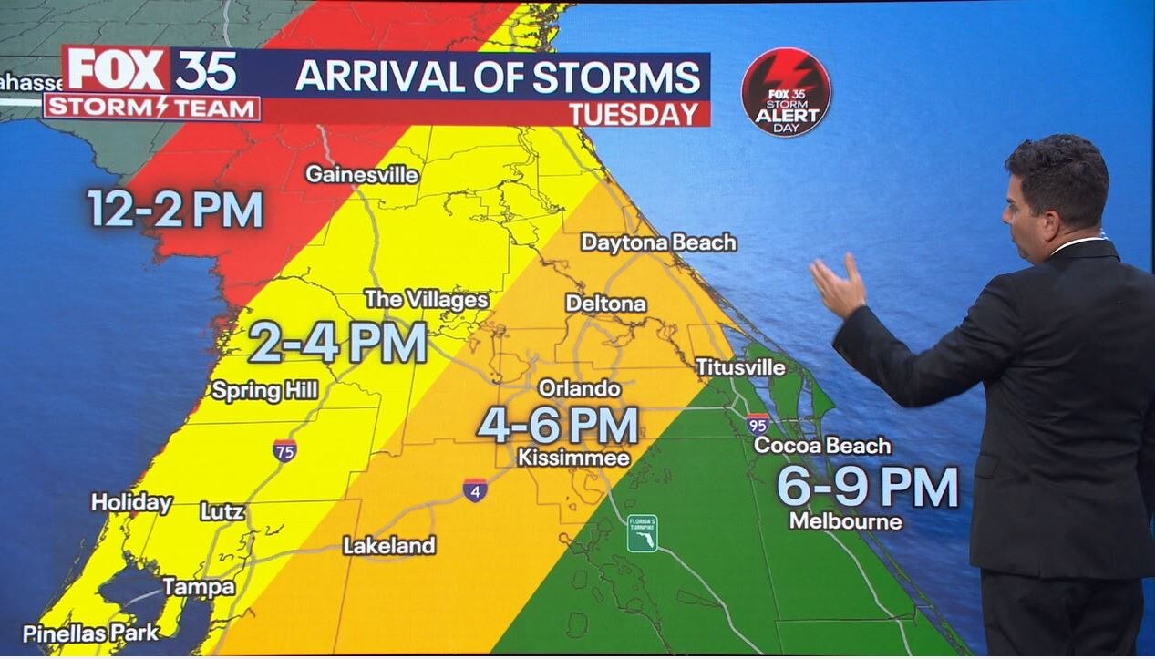 Tuesday has been declared a FOX 35 Storm Alert Day due to the potential for storms to bring Central Florida heavy rain, dangerous lightning, damaging gusts and possibly tornadic activity.