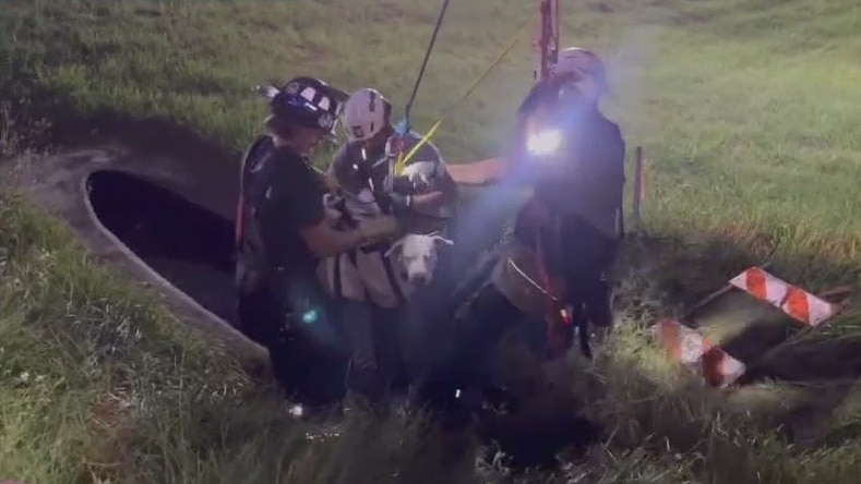 Firefighters rescue puppy from 14-foot hole