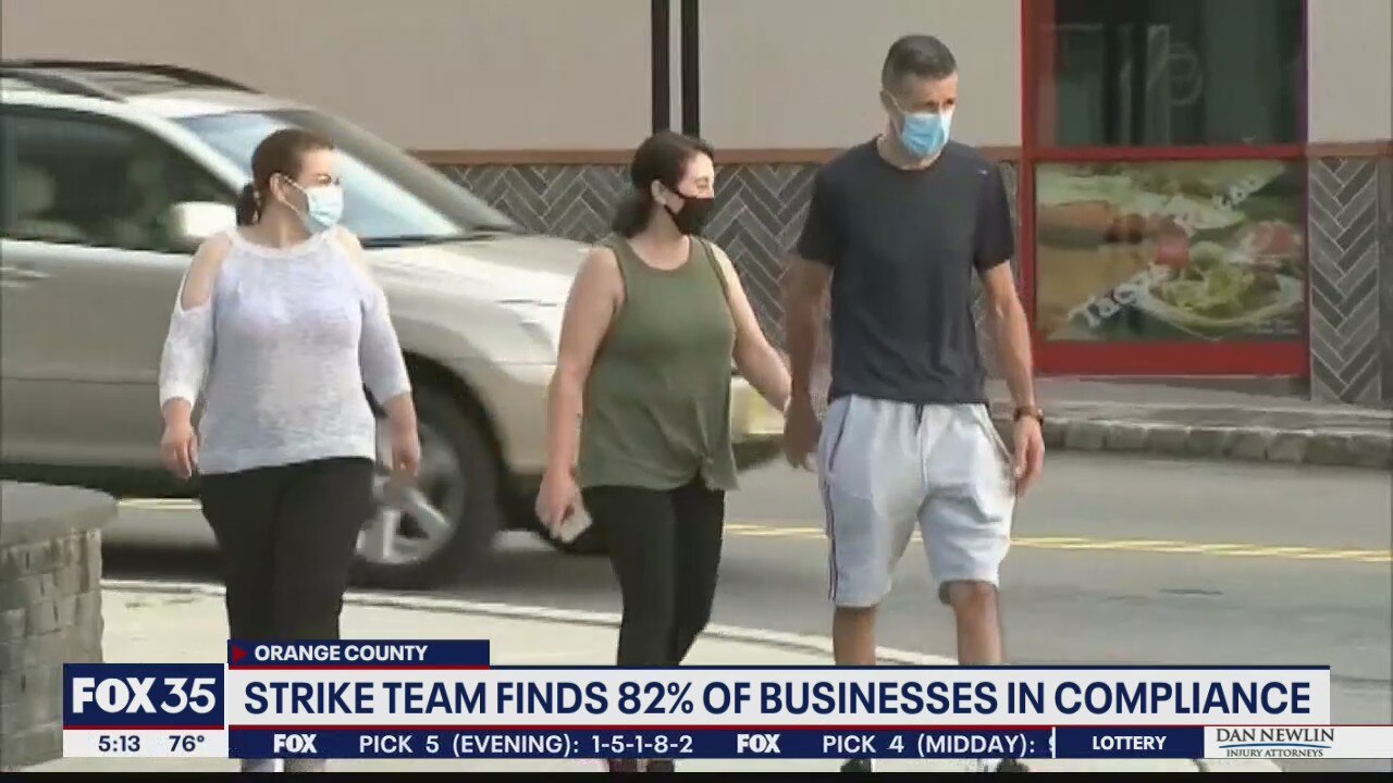 Orange County officials say 82 percent of businesses have been compliant with coronavirus regulations. Most violations were related to signage or social distancing.