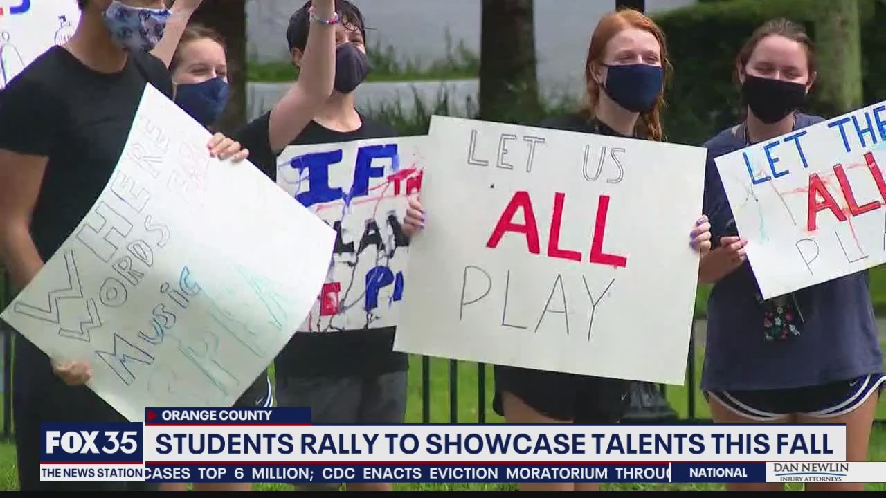 Orange County students held a rally in Orlando to allow cheerleaders and bands to participate during football games.