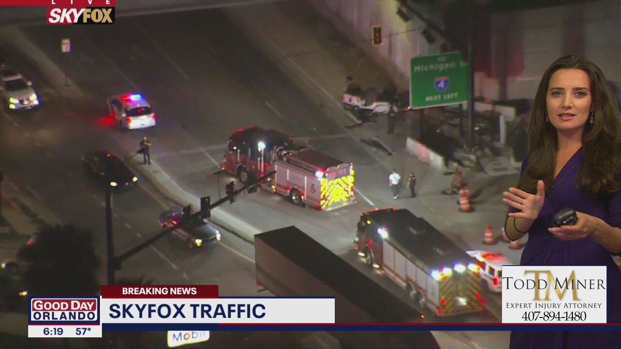 Overturned car causing delays on I-4 near Kaley Ave in Orange County