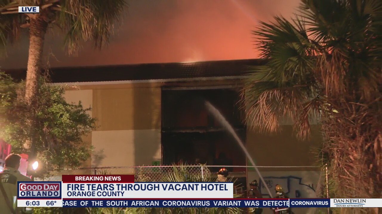 Firefighters battled a blaze early Tuesday morning at a vacant hotel near the Florida Mall.