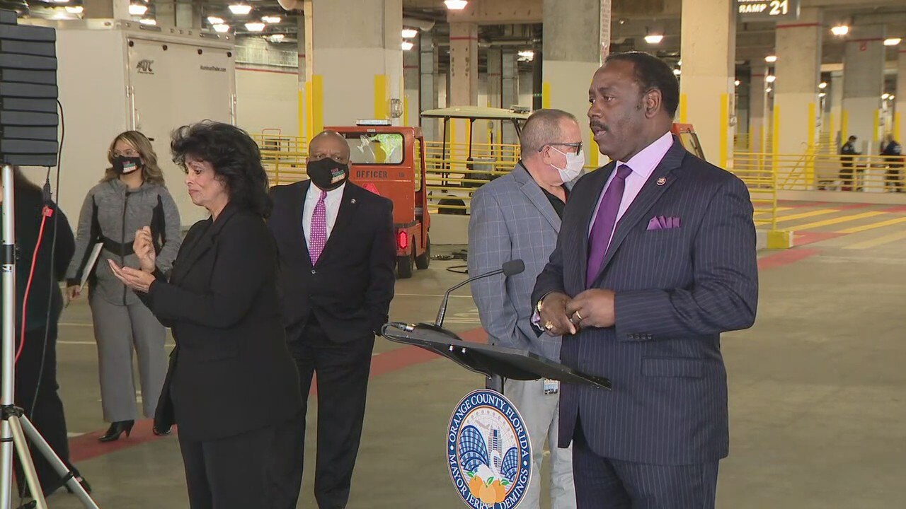 Orange County Mayor Jerry Demings and public health officials gathered at the convention center vaccine site on Monday morning.