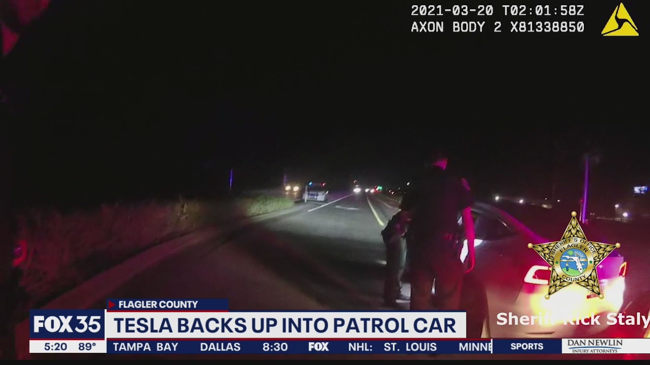 Flagler County deputies pulled over a Tesla going the wrong way on an Interstate 95 access road and discovered there was no driver. I saw him Inside the car were two teenage girls -- one in the back seat and one in the passenger seat. To make matters worse, deputies say the Tesla back up into a patrol car during the stop.
