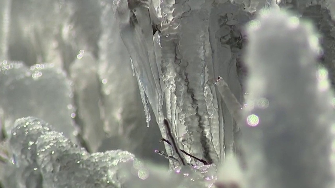 Ice covers Florida farm after overnight freeze