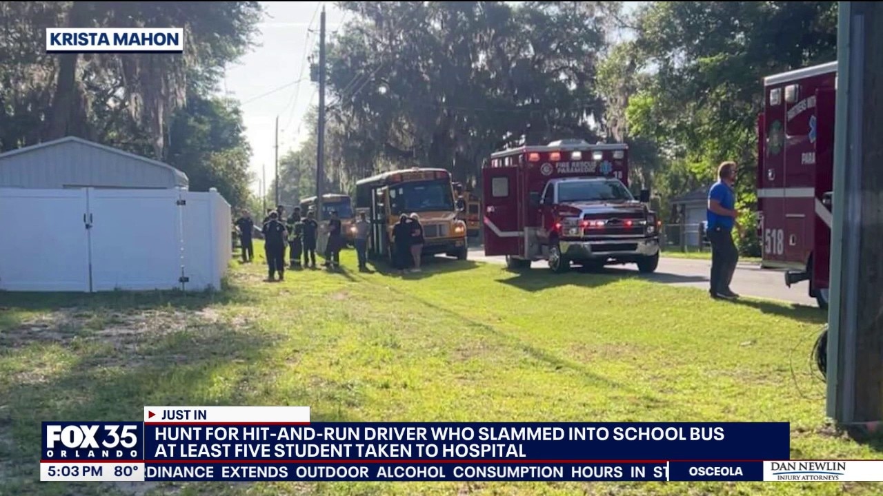 Authorities are searching for the driver of a pickup truck involved in a hit-and-run crash with a Marion County school bus that sent nine students to the hospital.