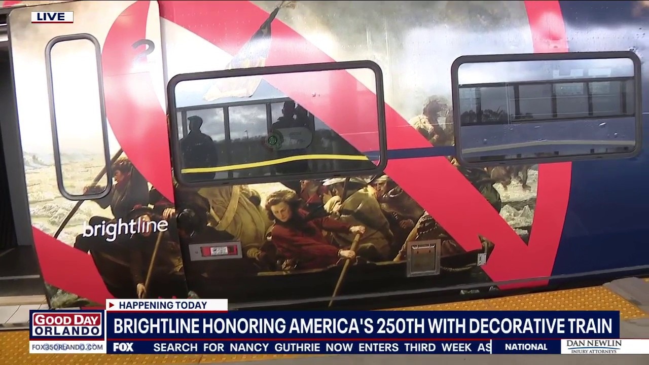 Brightline is celebrating America's 250th anniversary with a decorative train. The company's "Freedom Express" features a wrap that depicts different moments from U.S. history.