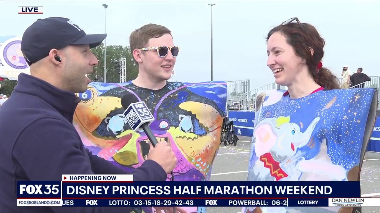 FOX 35's Matt Trezza was near the start line of DisneyRun's Disney Princess Half Marathon weekend, where he talked to a man and woman who dressed as Disney Lorcana cards.