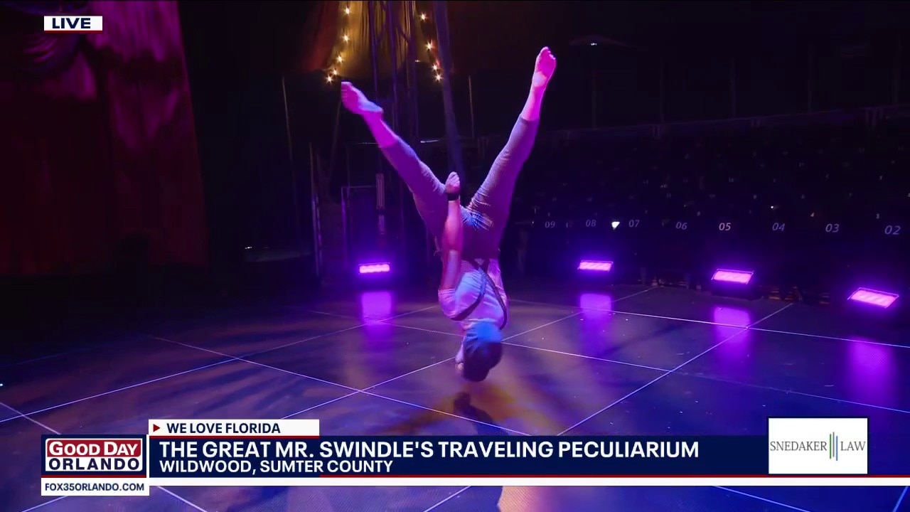 The Great Mr. Swindle's Traveling Peculiarium, a traveling show featuring aerialists and comedy, is now playing in The Villages. FOX 35's David Martin has all the details.