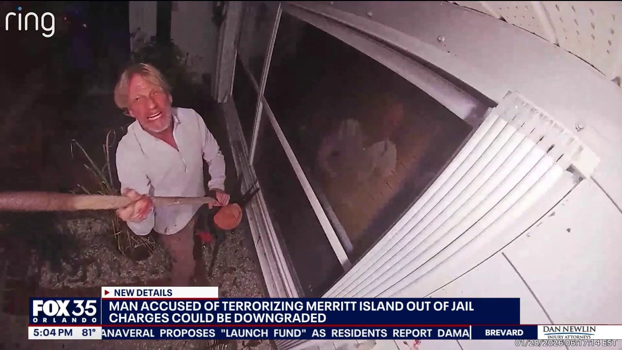 A man accused of chasing neighbors with a pitchfork and smashing security cameras with an ax has been released from jail, raising concerns among residents in Merritt Island.