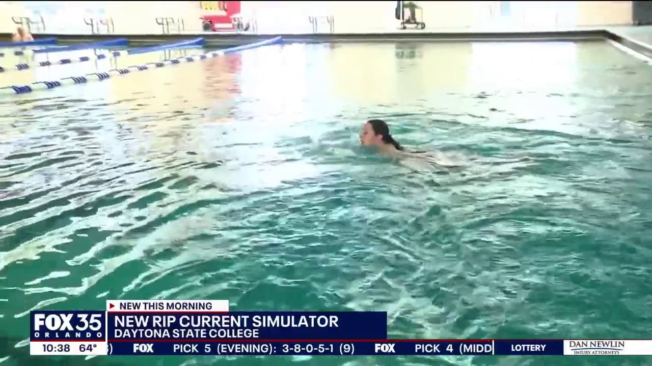 Do you know how to get out of a rip current? Do you know what a rip current feels like? A new simulator has debuted at Daytona State College, where Volusia County Beach Safety lifeguards can show kids, adults, and families what happens when you're stuck in a rip current and, most important, how to get out of one. Here are the main steps: Swim near a lifeguard, signal for help, then swim parallel to the shore. Once you realize you're out of one, then you can begin to swim towards shore again. FOX 35's Amanda Ruiz talked with Volusia County Beach Safety about the new simulator.