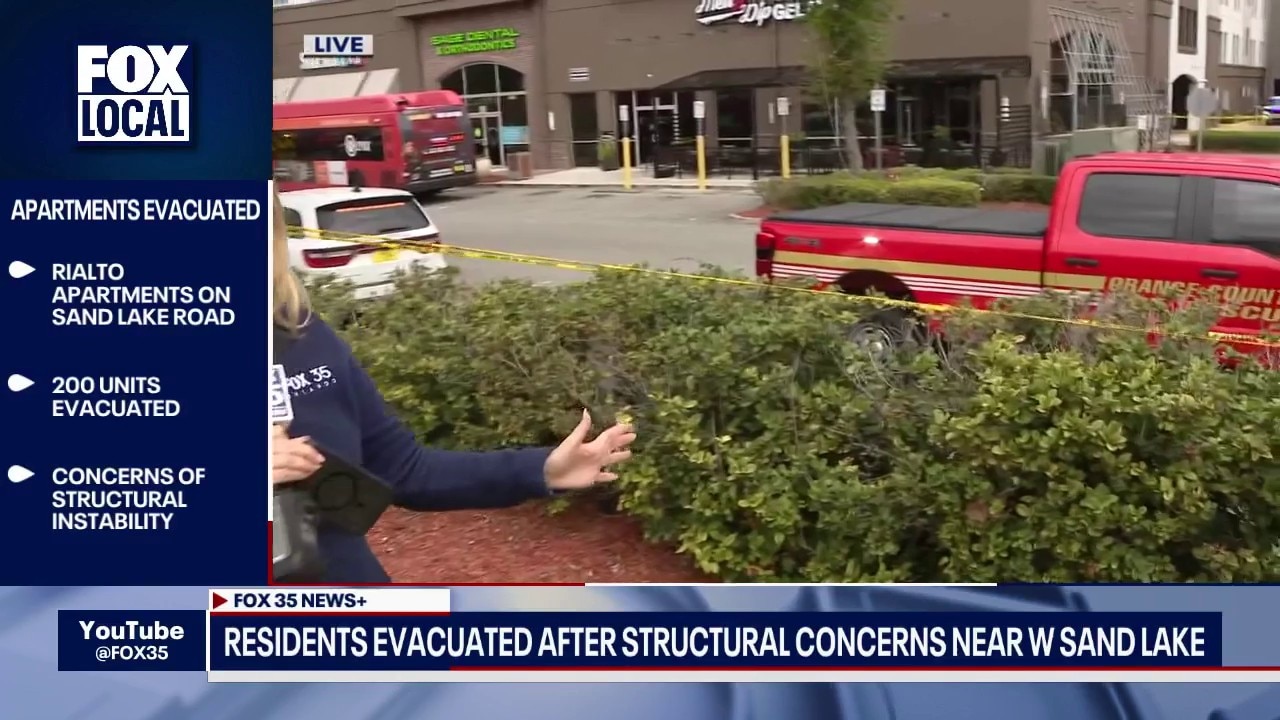 Residents at the Riato apartment building near West Sand Lake were woken from their units early Thursday morning after officials say a woman noticed she couldn't open her front door amid strange popping sounds. Officials say they had to pry the woman's door open before evacuating over 200 units. FOX 35's Amanda McKenzie spoke with Garrett Wymer live on the latest developments.
