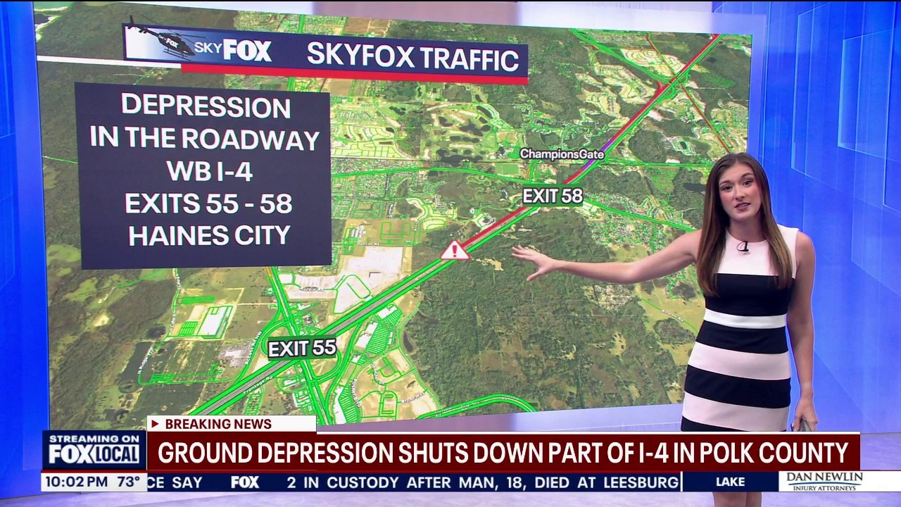 WB I-4 lanes shut near Haines City due to roadway depression