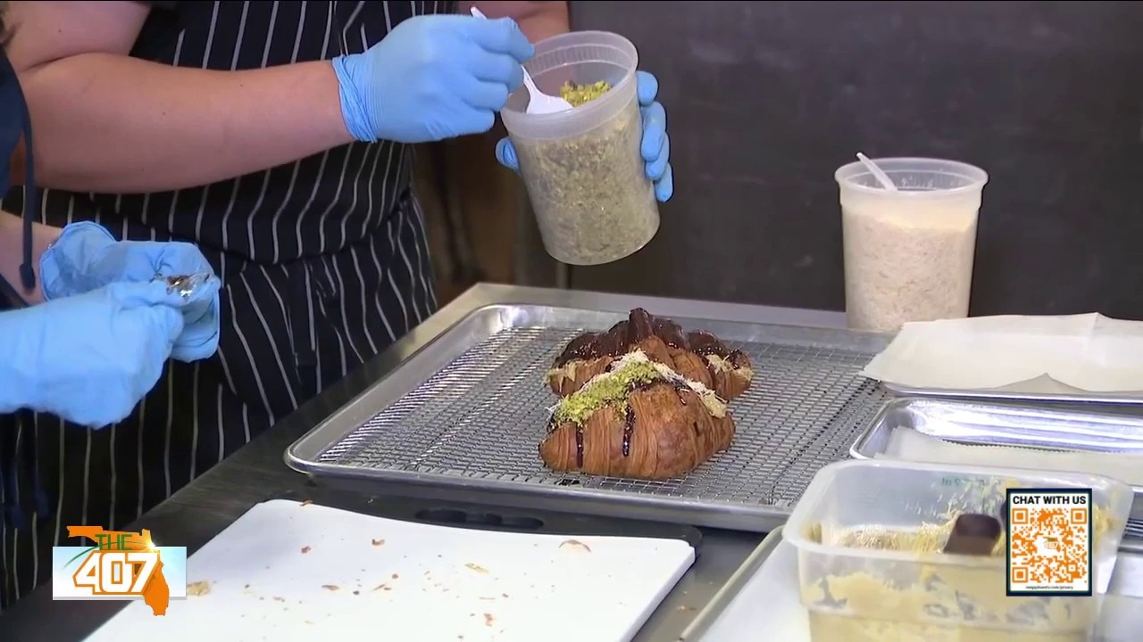 Chiffon Culture Bakery Cafe is turning up the heat on the local pastry scene with a lineup of sweets that are as beautiful as they are delicious! While their entire croissant selection is a buttery, flaky dream, The 407's Lauren Margolis featured their homage to the Dubai chocolate trend. The croissant is filled with a velvety pistachio cream, dipped in rich dark chocolate, and finished with a signature crunch of crushed pistachios and toasted phyllo.